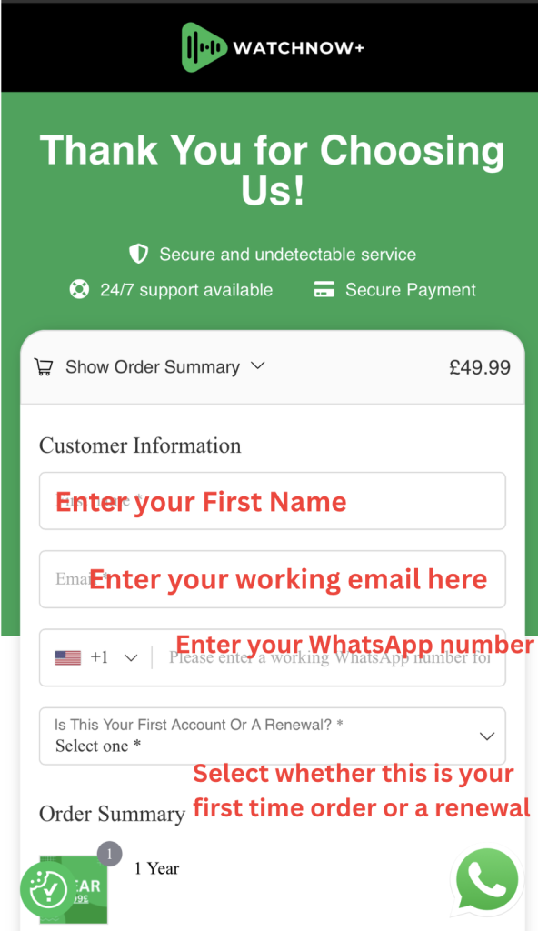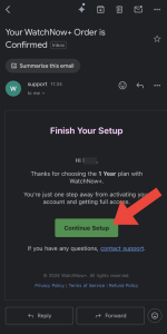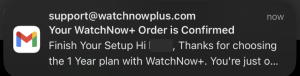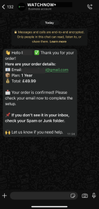 Within a few minutes, WatchNow+ will also message you on WhatsApp to confirm your order and help you finish setup